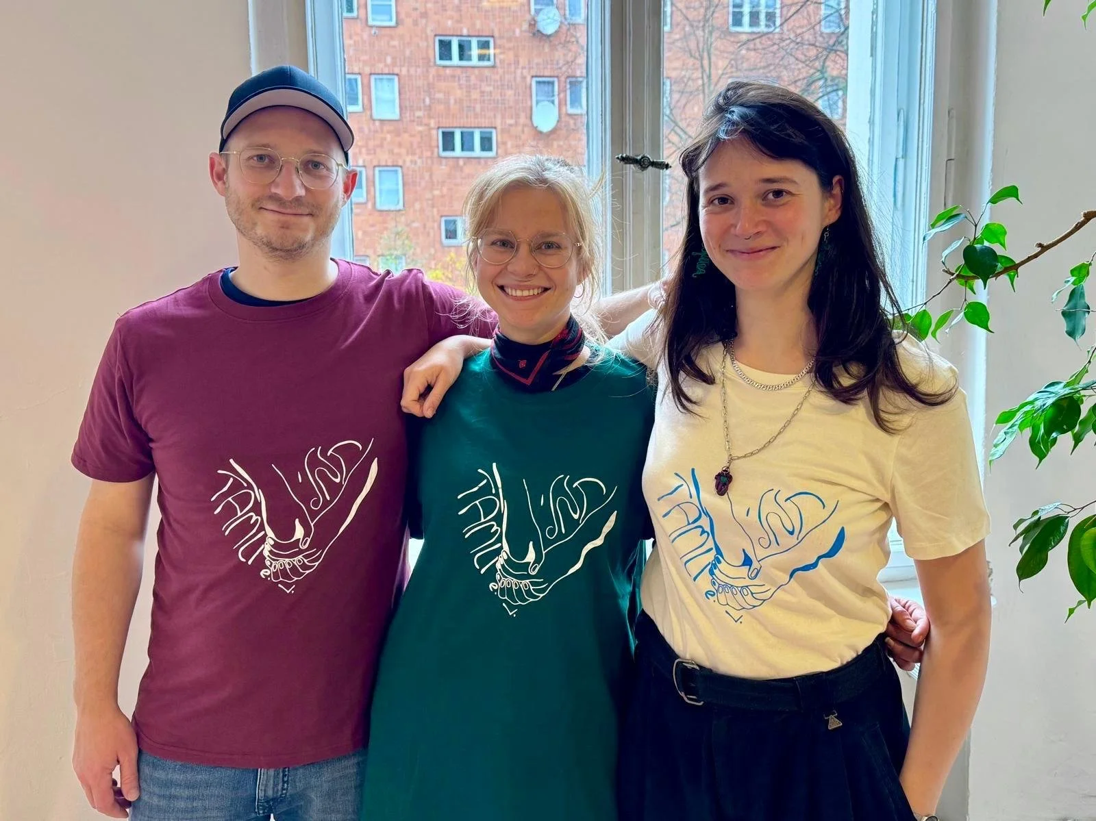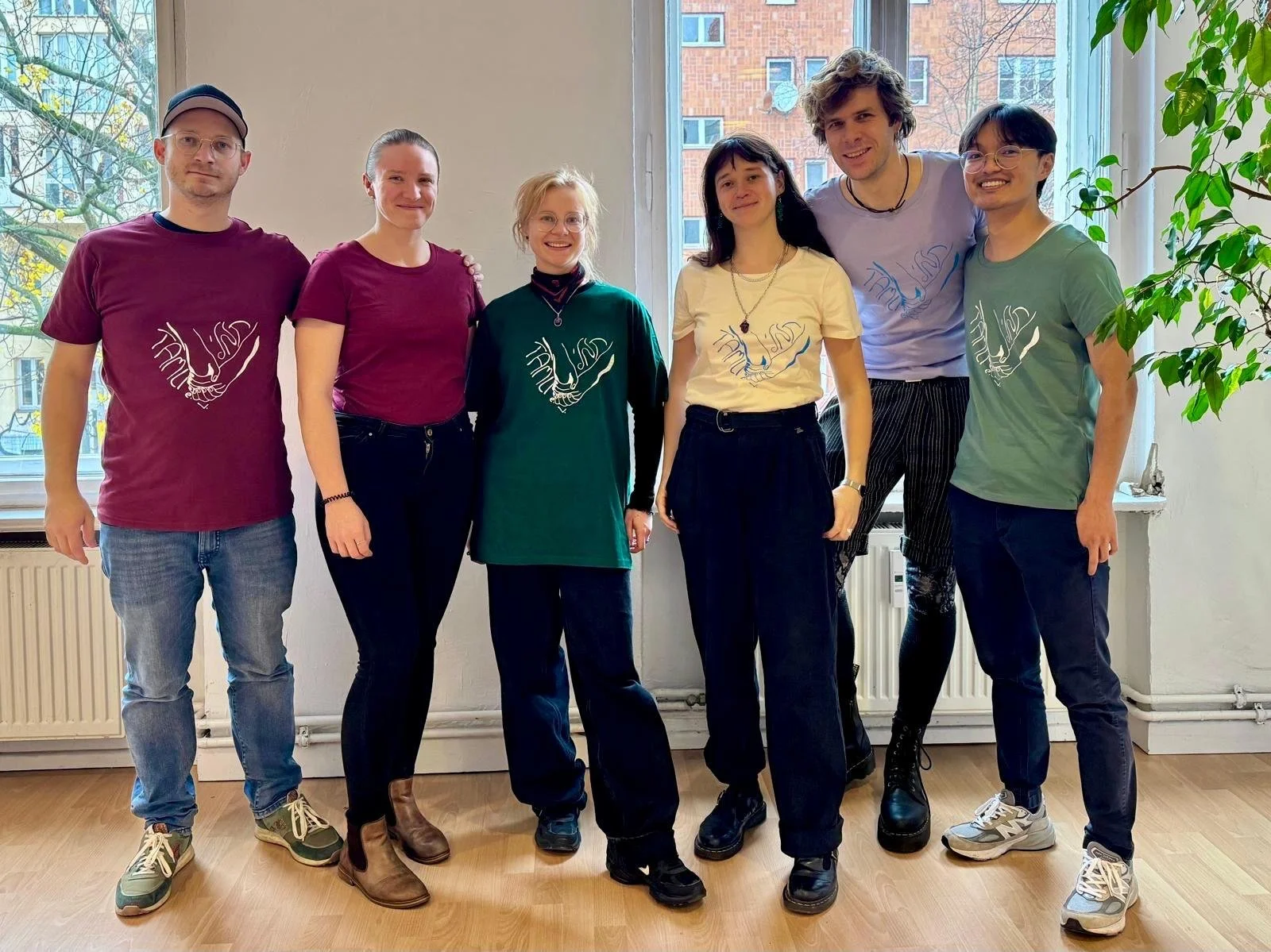 Tamli-Mitglieder auf der Mitgliederversammlung mit Siebdruck-T-Shirts